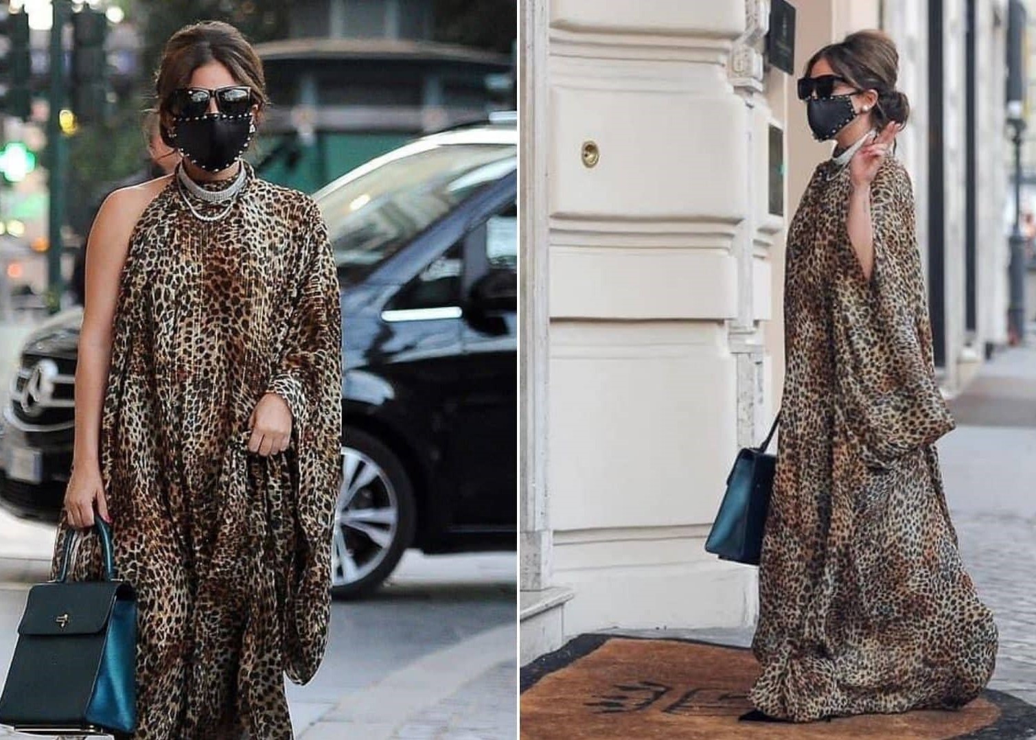 She certainty had the perfect designer ensemble for the occasion, as she was all dressed up in a statement-making leopard print caftan from Celine's fall/winter 2020 ready-to-wear collection. Gaga, 34, paired it with black heels, an embellished face mask and dark sunglasses.