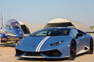 So yesterday we showed you a Lamborghini Huracan Avio going into an air force museum in America to pay homage to that car's aviation inspirations. Now the Italians show us how that's done with Lamborghini Passioni Tricolori in which the Avio joins some Ducati bikes and the Italian Air Force for a hugely spectacular stunt.