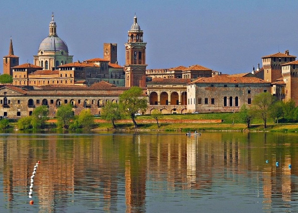 About 40 kilomtres south of Lake Garda in the flattest part of Lombardy, Mantova is a compact city hemmed in by artificial lakes on three sides; a fortification that has separated the town from the outside world for nearly a thousand years. Its water-bound location on the plains means it gets hot and humid in summer, and famously foggy in winter.