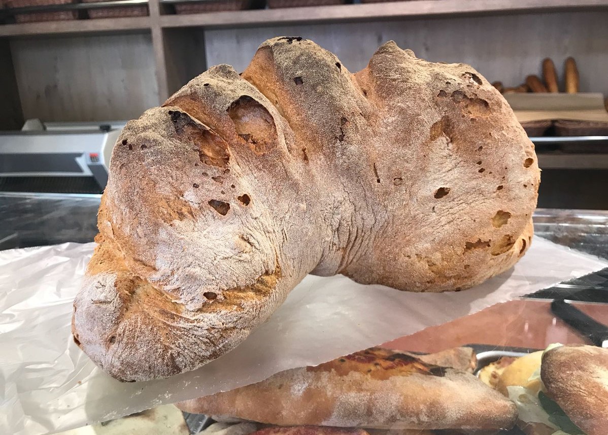 The bread obtained, thanks to the ingredients used and the specificity of the manufacturing process, is characterized by a yellow color, a typical and very different porosity (with pores inside the bread, with a diameter ranging from 2–3 mm up to 60 mm), an extremely characteristic taste and smell.