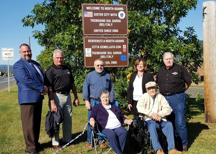 Two signs at the southern and western entrances to the city now proudly proclaim its relationship with Sister City Tremosine sul Garda in Italy. The 3-foot by 4-foot signs were installed Tuesday near the signs marking the North Adams border — one at Hardman Industrial Park and other near Harriman & West Airport.