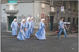 Coyne has included six large-scale prints whose rich colors and compositions depict the natural and majestic beauty of Naples. The remaining nine photographs show the raw, inner-city street life of a city that suffers from high unemployment and other urban woes.