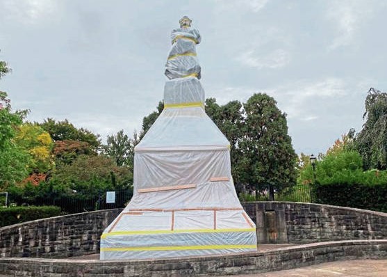 “It’s like he is dying again,” said Spagnolo, who joined a handful of people at noon in protest to keep the statue in place. Pittsburgh Mayor Bill Peduto said Monday that the statue was wrapped at 6 a.m. by public works crews and volunteers on Sunday to protect it from being defaced. Last week, Peduto recommended the statue’s removal, following up on a similar recommendation from the Pittsburgh Art Commission.