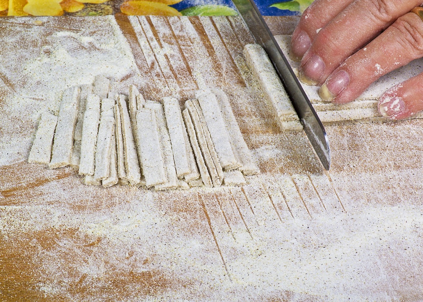 The recipe is quite simple: a dough made with fresh buckwheat flour, the pizzoccheri themselves, which is then cut into wide strips and dressed with cheese, butter, potatoes, and savoy cabbage. Their rustic texture makes them perfect to hold on to and exalt all the flavors. One peculiarity of this delicious type of pasta is that it’s not made with cereals at all, as buckwheat is a flowering plant in the knotweed family Polygonaceae, with grain-like seeds.