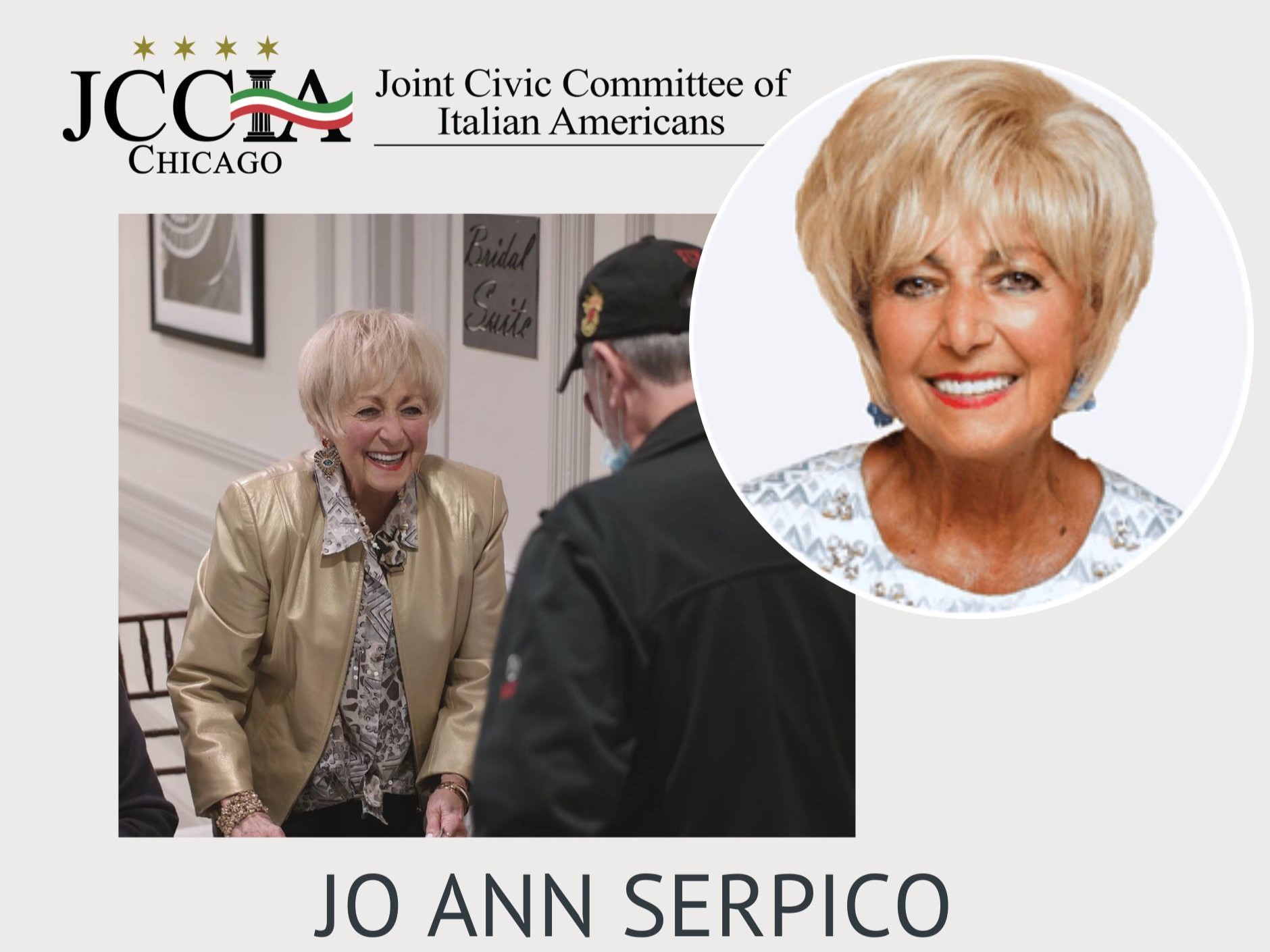 Jo Ann has been immersed in the activities of the community since birth, thanks to the unwavering involvement of her father, Joseph R. Salerno. “My father was a member of every Italian society, club and lodge in the Chicago area,” she fondly recalls. “It’s only natural that I followed his example of promoting Italian values and traditions.”