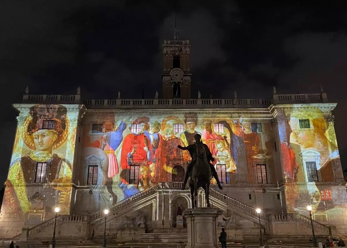 Rome city hall celebrates Christmas by projecting images of Nativity-themed frescoes and paintings onto the façade of Palazzo Senatorio on the Capitoline hill. The Visioni di Natale video-mapping project features scenes depicting the Nativity and the Adoration of the Magi, painted by Italian masters such as Botticelli, Caravaggio and Giotto.