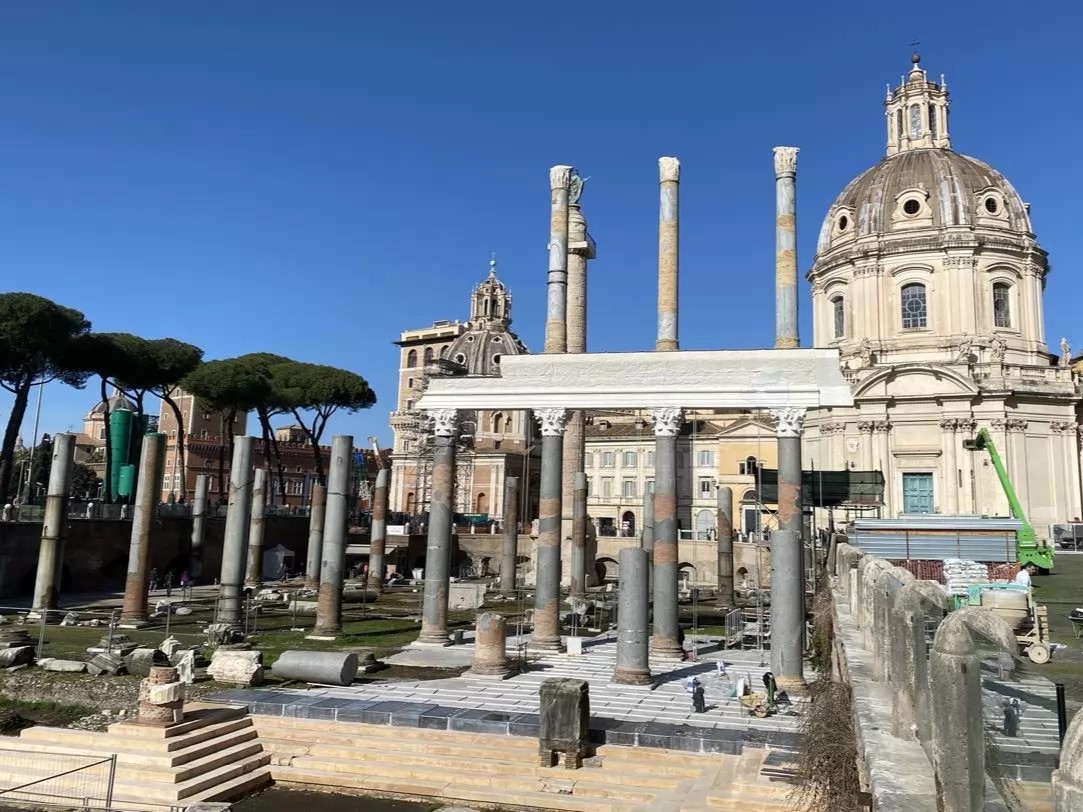 For the past century the three cipollino marble columns had been positioned erroneously elsewhere in Trajan's Forum until being restored to their rightful place, along the outer perimeter of the basilica's first nave. Towering at a height of 23 metres, the partially reconstructed monument adds a whole new dimension to the ancient site, granting visitors a sense of the vast scale of the building.