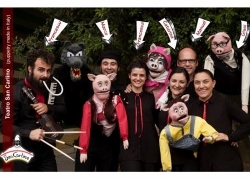 About the Play: The three little pigs have become bigger and bigger, and at mamma pig's place, there is not enough space for all of them. It's now time to leave their home and explore the world; it's time to grow up. The three brothers will soon discover how difficult it is to become a grown-up - at least until the wolf appears. All of us know that only the oldest brother will survive, following the advice of mamma pig, by building a house of bricks. As you will discover, as in all plays staged by San Carlino, some small details are changed. Thanks to the audience, maybe the other tiny brothers will escape and find shelter at their brother's place, instead of building houses of straw or sticks. The wolf will be left empty-handed and with a burned tail!