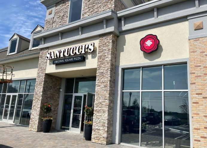 The famous Santucci’s Original Square Pizza restaurant family continues their area expansion, with a new location coming to Washington Township on Egg Harbor Road. Mark stopped in today and caught up with two of the three owners of this franchise location, Brett and Frank… who tell us that they are planning their opening for next Thursday, May 12th at 10am!