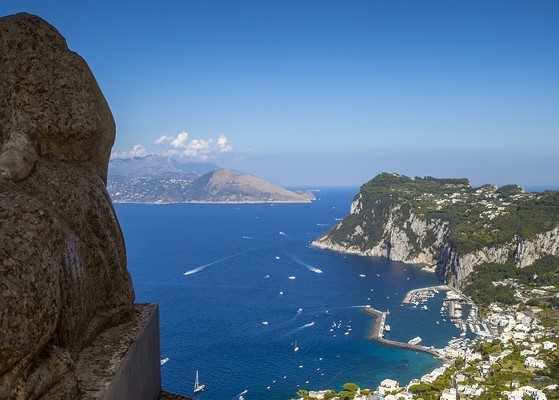 The itinerary starts out flat in Marina Grande, amid lemon groves and silent doors. It then enters the woods, and in this stretch the sea is barely visible, peeking amid the leafy branches. As you keep going, the vegetation thins out, the view opens up, to reveal the port of Marina Grande, almost one with the sea, and nearby the white and pink colors of Capri, with the funicular, the bell tower on the piazzetta; as you keep going up, the profile of the Vesuvius volcano, and the Sorrentine peninsula start to reveal themselves.