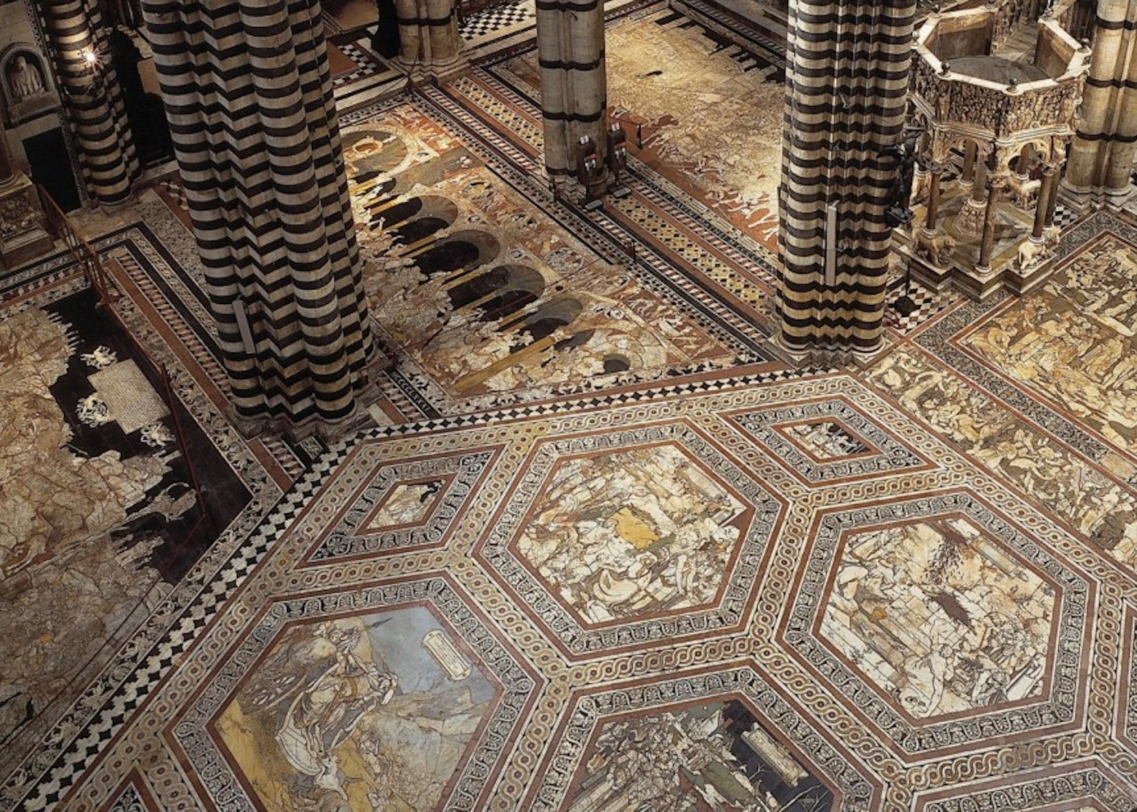 The cathedral of Siena, in Italy’s Tuscany region, is renowned for its spectacular 14th-century mosaic floor. But due to its fragility, the masterpiece is protected from visitor foot traffic by fibreboard panels most of the year. For the next two weeks, however, visitors to the religious site will be able to get a rare view of the 56-panel marble floor in all its glory.