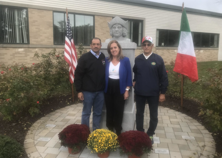 Town residents, led by local Italian heritage organizations, gathered at the Christopher Columbus statue at the Municipal Center Monday in celebration of Columbus Day. More than two-dozen residents gathered around the statue to celebrate Columbus’ voyage of discovery in 1492. Mums were placed at the base of the statue and later in planters on Columbus Boulevard in honor of the holiday.