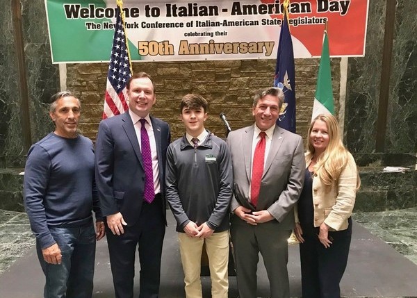Domenick Boccia, a senior at St. Peter's Boys High School, was honored Monday by Assemblymen Michael Cusick (D-Mid-Island) and Matthew Titone (D-North Shore) at the Italian-American Day 50th Anniversary Ceremony in Albany. Each year, the New York Conference of Italian-American Legislators award four scholarships -- two academic and two athletic -- at the annual ceremony.