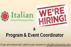 The Italian Cultural & Community Center (ICCC) seeks qualified candidates for the Program & Event Coordinator position. We are looking for candidates who are personable, cheerful and comfortable wearing many hats. The ability to work independently is crucial, as is the willingness to be a team player. The best candidates are detail-oriented, highly organized, deadline-focused and problem solvers.