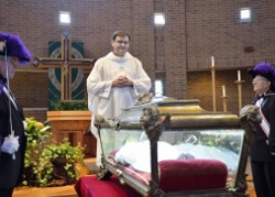 The display at the St. Francis of Assisi church in Orland Park, southwest of Chicago, is part of a first-ever visit to the United States, and will take in 16 states. The remains also drew huge crowds at a viewing in Chicago on Monday. Visitor Kathy McNolte, 43, said Goretti was an example of how violence could be met with mercy - a message she said was especially needed in Chicago, which saw 435 homicides in 2014, according to the Chicago Tribune.