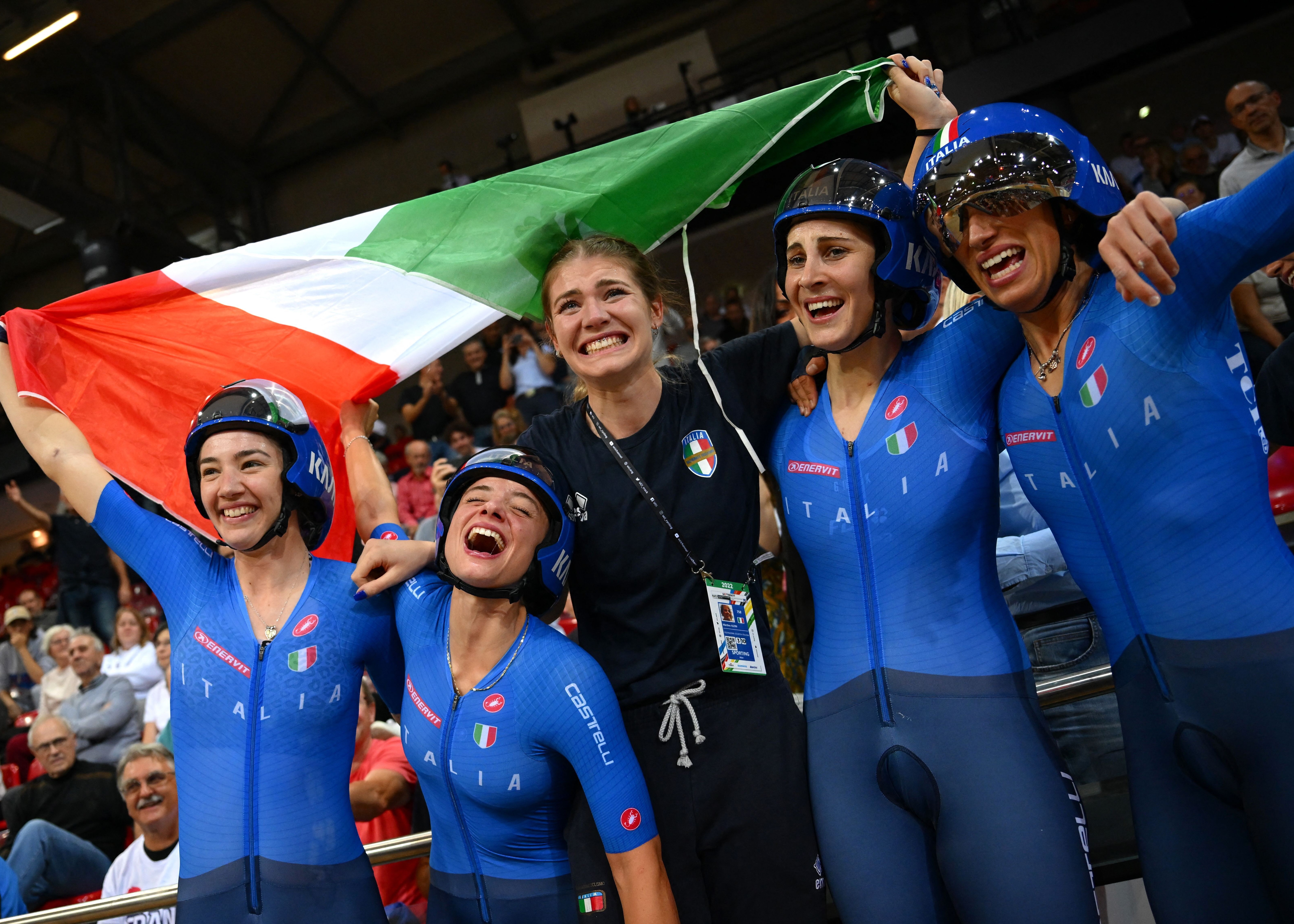 Historic gold for Italy in the women's team pursuit at the ongoing track cycling World Championships in Saint Quentin en Yvelines, France. The Italian quartet beat Great Britain in the final. Protagonists of the feat were Chiara Consonni, Vittoria Guazzini, Elisa Balsamo and Martina Fidanza, who just 24 hours earlier had won gold in the scratch. The Italian quartet, rainbow silver medalists a year ago, finished 1"609 ahead of their opponents.