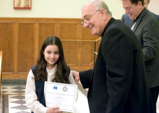 The $100,000 donation of the organization was destined to provide scholarships for 100 students of Italian-American descent attending Catholic academies and schools in Brooklyn and Queens. Bishop Nicholas DiMarzio greeted every child present and distributed their scholarship award certificates.