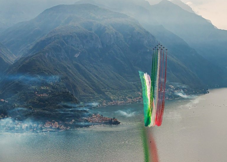 Le Frecce Tricolori translates as the Tricolor Arrows, but I find the name much more appealing in the original. Involving ten aircraft, nine in close formation plus a soloist, the Italian group is the world’s largest and most famous aerobatics patrol, with a typical flight demonstration including about twenty maneuvers in an approximately thirty-minute fly-past.