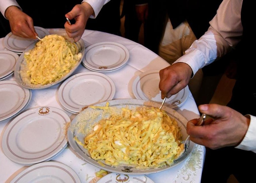 Elimination of these last two ingredients is not just preference, it is Italian culinary history, so here goes. Fettuccine all’Alfredo was created in 1914 by Alfredo Di Lelio, who had four years earlier opened a restaurant in Rome, Italy, under his first name on the Via della Scrofa. At the time Alfredo’s wife had given birth to their son Armando but was left without an appetite. Alfredo tried everything, until he made a plate of fresh fettuccine and swirled it in a pan with Parmigiano and butter.