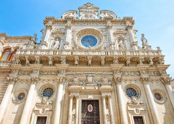Important local architects, including Gabriele Riccardi, Francesco Antonio Zimbalo and Cesare Penna, contributed to the construction of the church, with the help of master stonecutters and carvers, also from the Lecce area. As typical of Baroque style, the facade is richly decorated, with six columns supporting an entablature, with animals, grotesque figures and vegetables; it also features a large rose window.