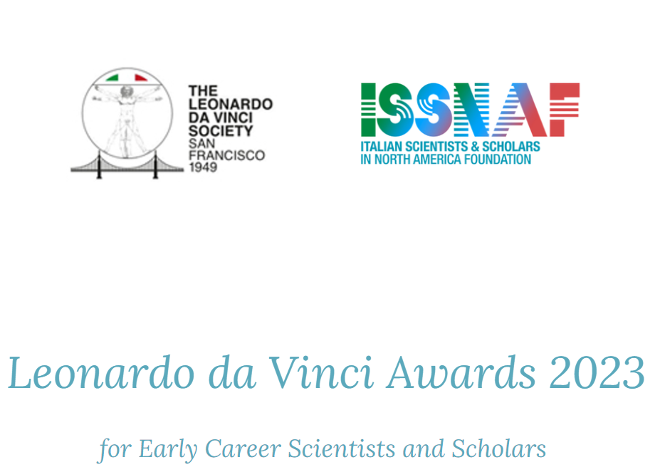 The Leonardo da Vinci Society and the Italian Scientists and Scholars of North America Foundation (ISSNAF) Bay Area Chapter are seeking applications for the Leonardo Award 2023. This award was established in 2019 on the 500th anniversary of Leonardo da Vinci’s death to recognize the outstanding contributions of Italian/Italian American early career researchers/scholars working in the San Francisco Bay Area.