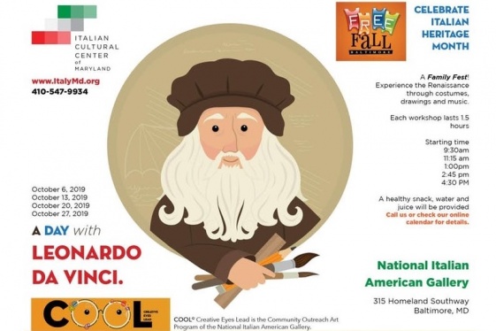 Sunday, October 20, 2019. 11:15 AM – 12:45 PM EDT. National Italian American Gallery at the Italian Cultural Center of Maryland, 315 Homeland Southway, Baltimore, MD 21212. Leonardo was a painter, an architect, an engineer, an inventor, a fantastic cook and a talented illustrator. For Luca Pacioli's "De Divina Proportione", Leonardo was the illustr...