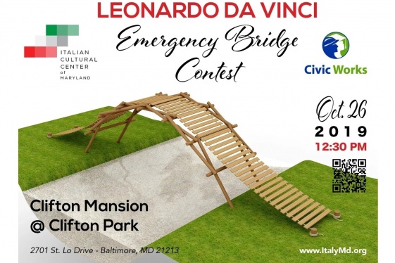 Saturday October 26, 2019. 12:30 PM. Clifton Mansion @ Clifton Park, 2701 St. Lo Drive - Baltimore, MD 21213. The Italian Cultural Center of Maryland in collaboration with Civic Works is commemorating the 500th anniversary of the passing of Leonardo Da Vinci by giving you and three friends the opportunity to build one of Da Vinci’s brilliantly desi...