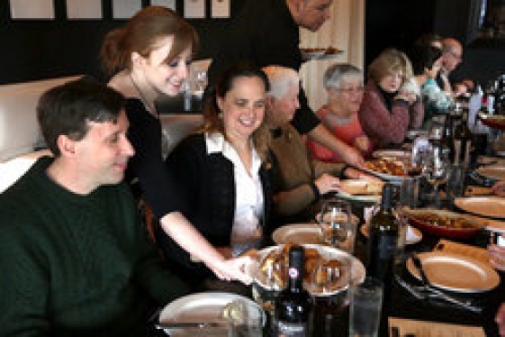 by Claire Loew Local slow food enthusiasts gathered Sunday to enjoy a four-course, locally sourced dinner and to support school gardens. The eighth annual Comfort in the Cold dinner was held at Luke Palladino Seasonal Italian Cooking in Central Square. Chef TJ Ricciardi prepared risotto fritters and fried spaghetti with cured...