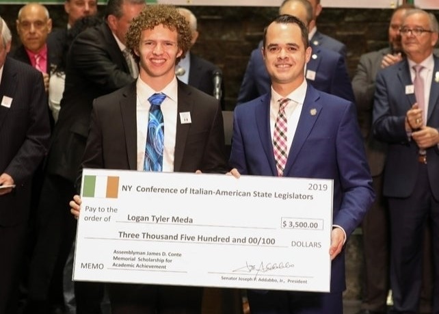 From the Office of Sen. David Carlucci: Today Senator David Carlucci (D-Rockland/Westchester) presented Clarkstown High School North senior, Logan Meda with a $3,500 college scholarship on behalf of the New York Conference of Italian-American State Legislators. Carlucci, a member of the conference, annually holds the Italian-American Scholarship contest in his district, which is open to all college bound seniors who excel in academics or athletics.