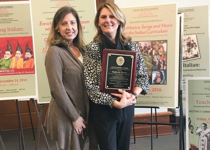 Fox Lane High School Italian teacher Raffaella Pirone recently became the first teacher from New York to receive the national Coccia-Inserra Award for Excellence and Innovation in the Teaching of Italian (K-12). "This annual prestigious recognition of outstanding and creative teaching is funded by Coccia Foundation and the Inserra families under the auspices of the Coccia Institute," said Dr. Mary Ann Re, Director of the Coccia Institute for the Italian Experience in America at Montclair State University.