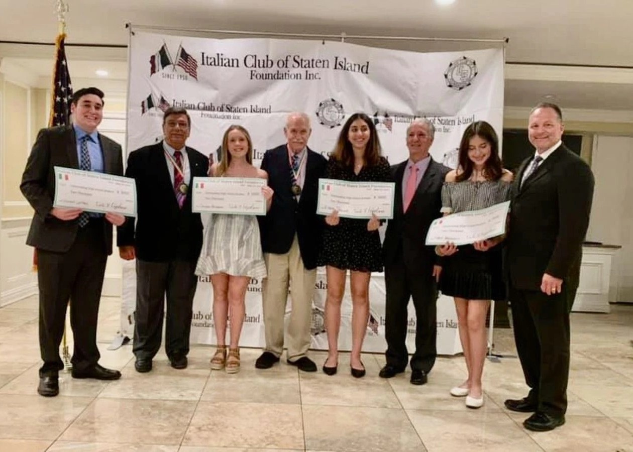 Congratulations are in order for Vincent Lepani, a student at Susan Wagner High School, Thea Akhrass and Colleen Bridgman from St. Joseph Hill Academy, and Emma Padula of Curtis High School, who were each awarded $2,000 scholarships during the Italian Club of Staten Island Foundation’s annual dinner at Bocelli Ristorante, Grasmere.