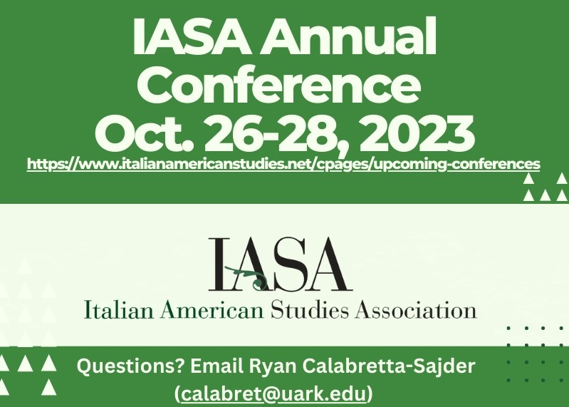 The Italian Program of the U of A will be hosting the 2023 Italian American Studies Association annual conference. The keynote speaker will be Jack Halberstam of Columbia University. We encourage all faculty and graduate students to consider submitting a proposal. Date: Oct. 26-28. University of Arkansas, Fayetteville - Graduate Hotel. Submission Deadline: April 15. Submit a proposal