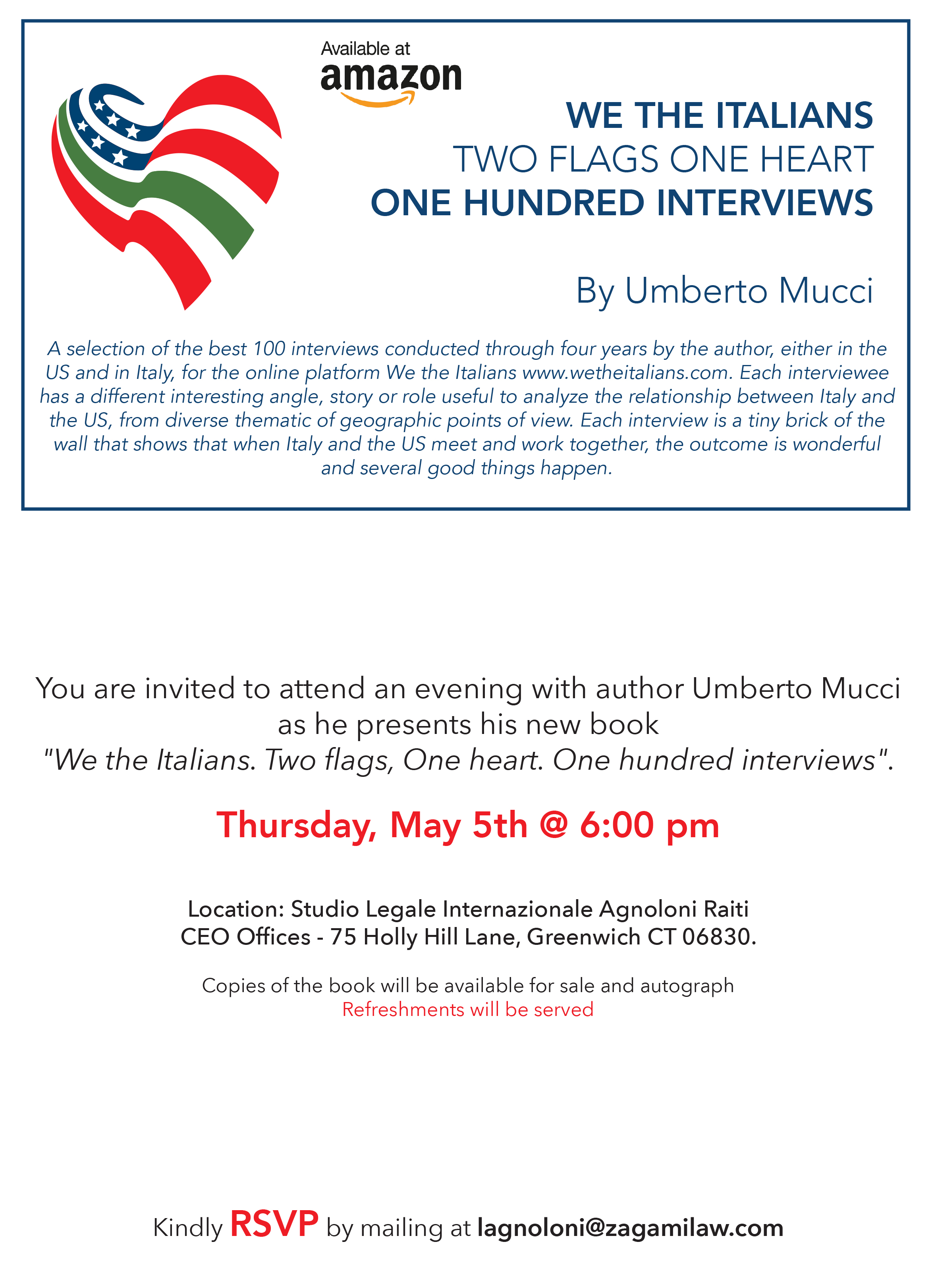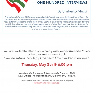 WTI Events: May 5 2016 Presentation of We the Italians, the book in Greenwich, CT