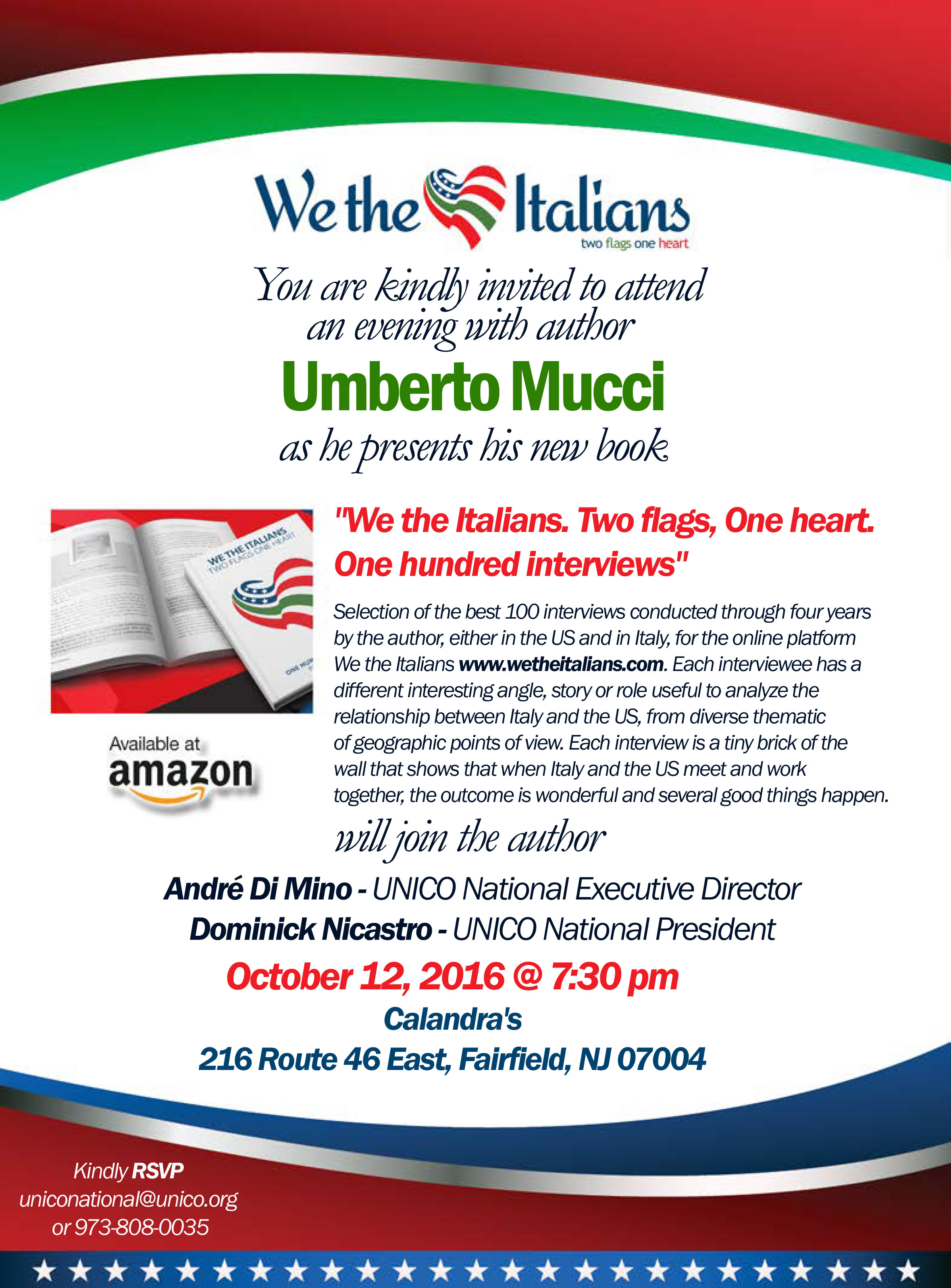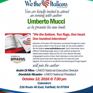 WTI Events: October 12 2016 Presentation of We the Italians, the book in Fairfield, NJ