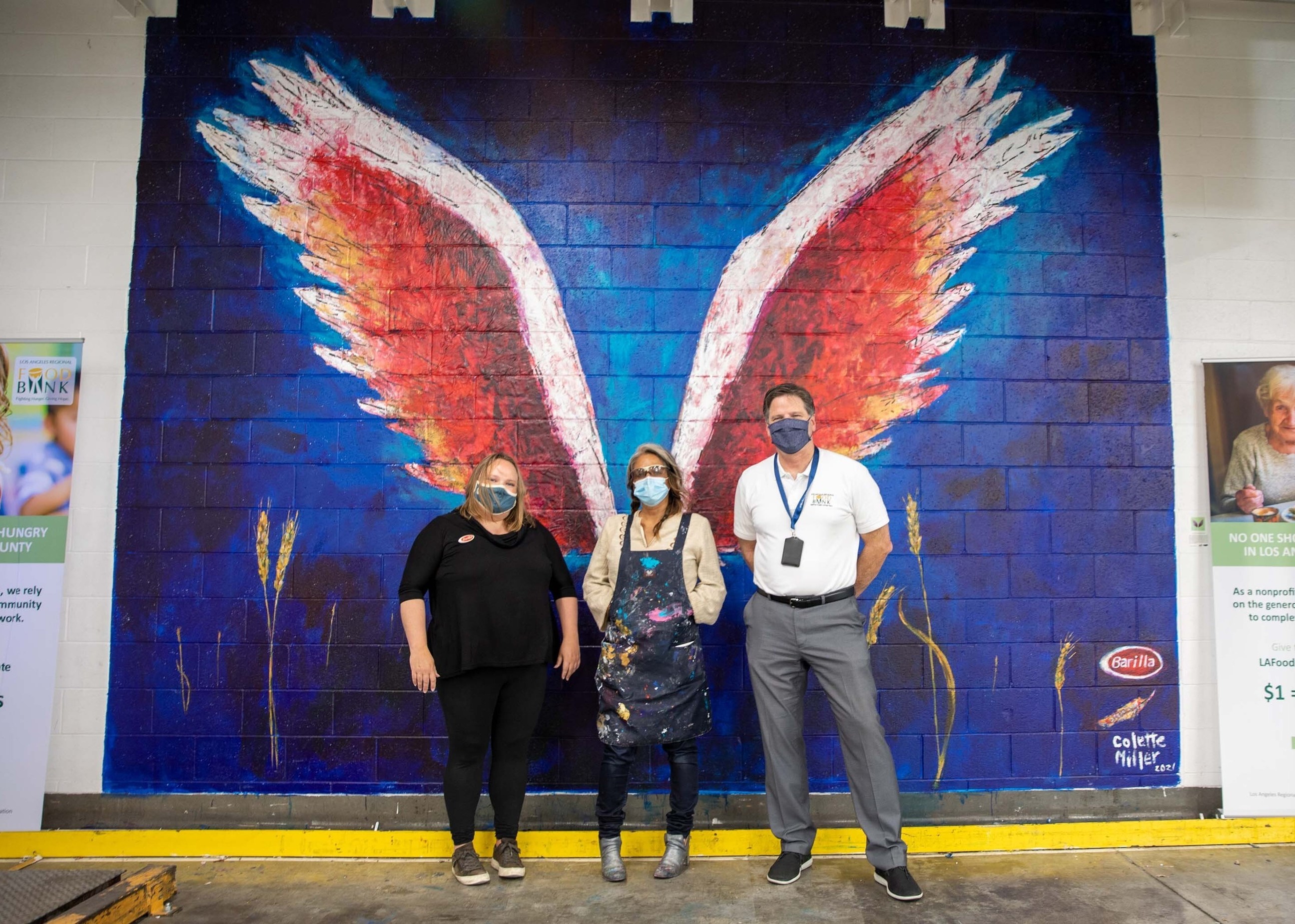 Barilla, a supporter of the LA Regional Food Bank since 2018 and one of the sponsors of the Food Bank's Mobile Food Pantry (MFP) Program, has partnered with world-renowned artist Colette Miller who has installed one of her famous Global Angel Wings Project murals in the volunteer center at the Los Angeles Regional Food Bank.