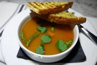Bartender Aaron Melendrez is responsible for "From the Kitchen With Love," a $22 bone broth libation made with six ounces of lamb consommé plus two ounces of Glenlivet 15. And no, this is not like French onion soup where the booze is added in then cooked out. Melendrez pours in the scotch just before serving.