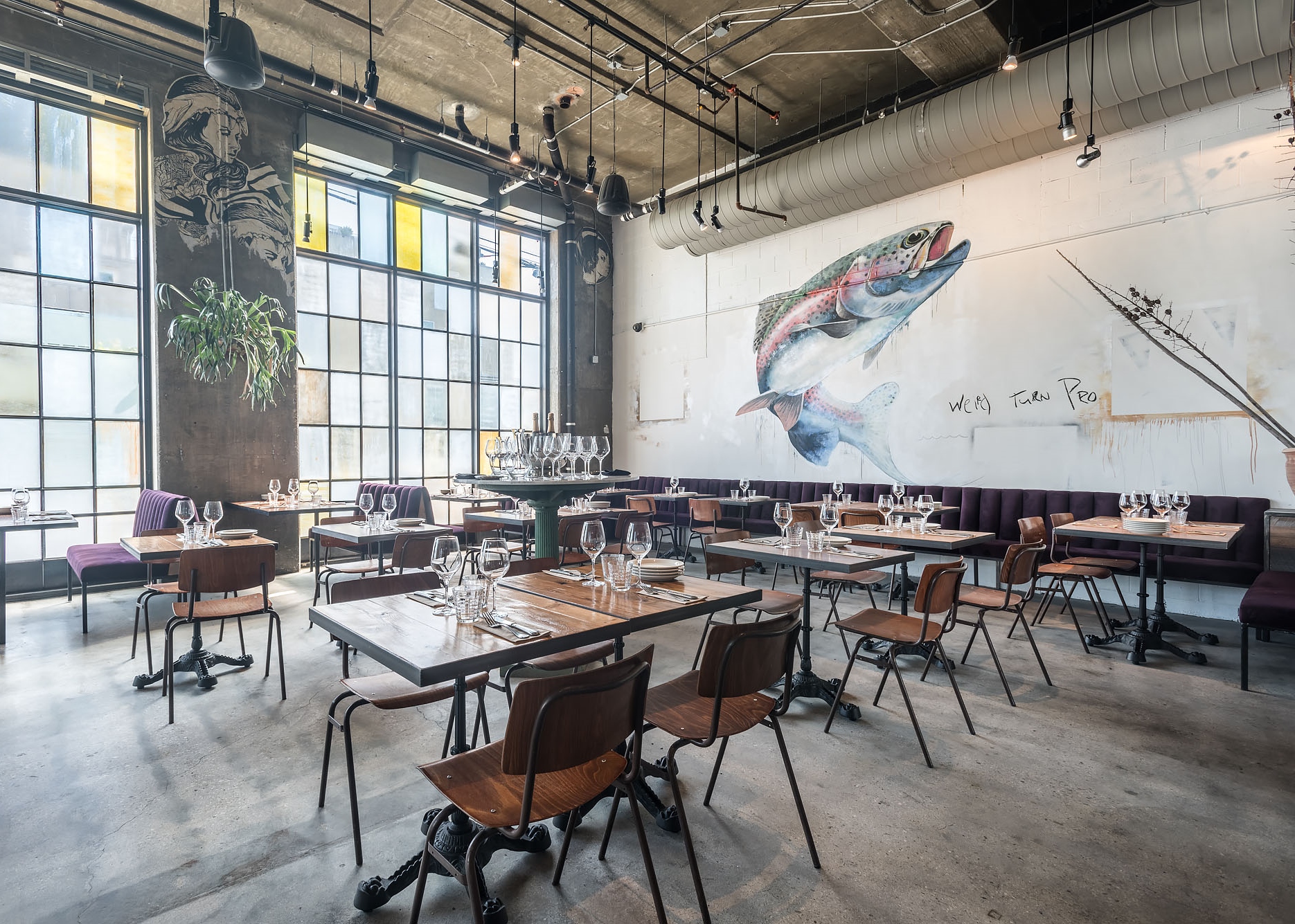 With said new experience comes a lot of changes to the decor of the place, too. Instead of simply ordering up at the sunny front counter and taking a seat down below, guests will now be transported through a long, inviting tunnel wrapped in warehouse-style windows and on into the tall dining room. A former patio wall has been pushed out to the sidewalk to add more square footage inside, where all the ironwork and artwork stands.