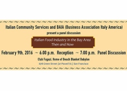 Italian Community Services and BAIA (Business Association Italy America) join together to host a lively evening of networking and conversation about how Italian food and industry has evolved and continues to be a favorite in the Bay Area. This event is a follow up to our first joint event last year, where we explored the impact of Italian art and architecture in the Bay area. This year's panel will focus on examples of the Italian food industry in the Bay Area, from various perspectives as well as current trends and impact. The panel will feature as a special guest Mr. Franco Denari, CEO of Eataly.net.