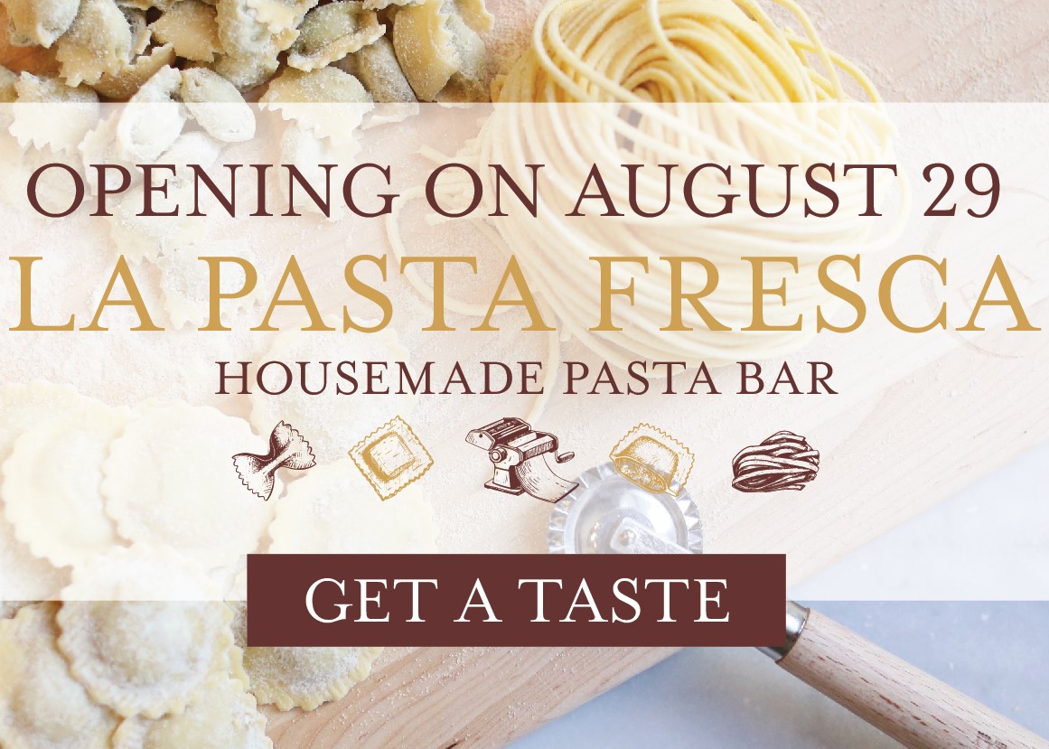 The newest addition to our grab-and-go counters, La Pasta Fresca will offer regional Italian recipes and thoughtful wine pairings, ready for casual dine-in or take-away. Plus, we’re celebrating the opening with an exciting treat for our most passionate pasta fans: starting at 11 a.m. on opening day, the first 10 people in line will receive a free pasta making class in La Scuola!