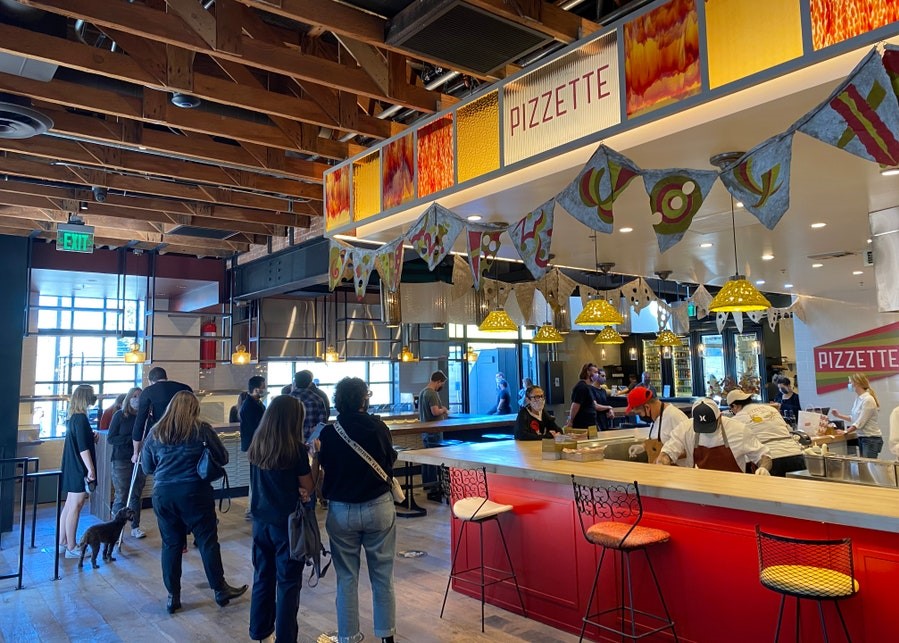 One of the most anticipated restaurants in the space is led by Chef Nancy Silverton. Her new pizzeria serves satisfyingly petit pies, hence the name, “Pizzette.” “I wanted to create something that people could take back to their office, and I thought of the idea “pizzette,” because it’s smaller and easier to take back to your desk,” she said on opening day.