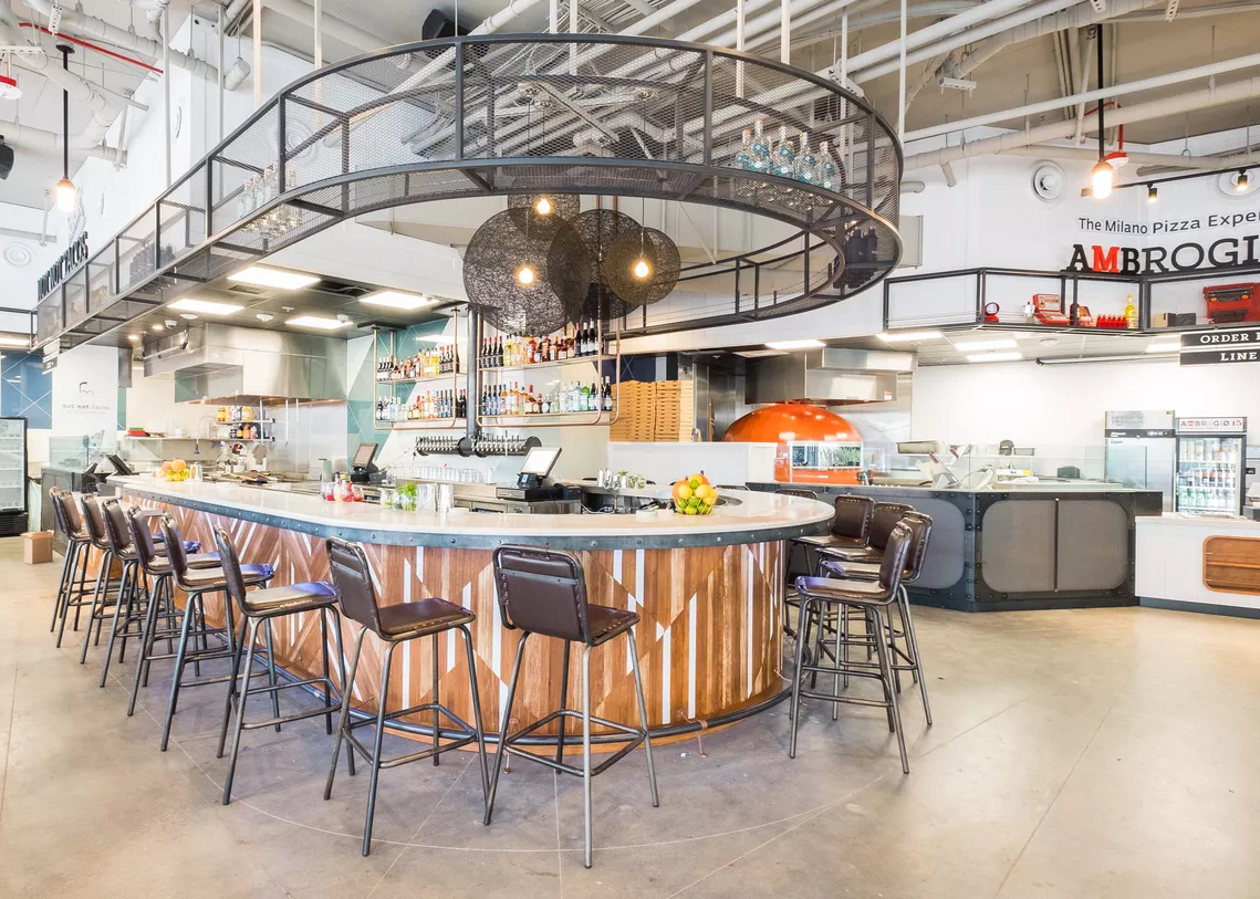 The Little Italy Food Hall heads into its second year with a new eatery that will make its debut later this fall, joining Mein St. Asian Kitchen, Not Not Tacos by Sam the Cooking Guy, Wicked Maine Lobster, and Bobboi Natural Gelato in the space. Replacing Roast Meat & Sandwich shop in the 4,685-square-foot food emporium is a second offering from Ambrogio15, one of the hall’s founding tenants which also operates a Pacific Beach restaurant dedicated to its Milanese-style pizza.