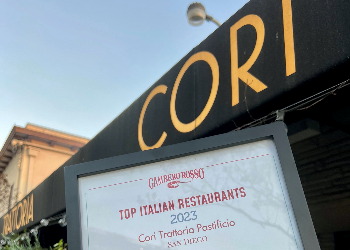 Italy’s top food & wine publishing group Gambero Rosso has awarded San Diego's Cori Pastificio with its highest honors, which only five Italian restaurants in the entire country received.