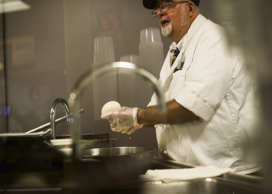 “It was very different, but it was good,” Regina Hale, 54, said. The fresh mozzarella has more color and buttery flavor than standard fare. “It's good to know that they still make it by hand.” Behind a small glass counter, Grosser, 65, of Greensburg feeds cheese curds through the mouth of a stainless steel board fitted with wire and into a mixing bowl full of hot water. It's heated to 180 degrees — hot enough to mix the curd together and make it pliable, but not hot enough to sap it of butterfat, Grosser said.