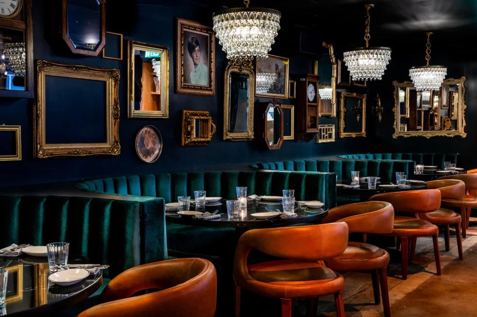 With low lighting, velvety textures, and a wall of mismatched vintage mirrors and portraits, Grazie Mille has a moodier vibe than the festive Grazie Nonna, which pays tribute to Italian-American Sunday dinners.