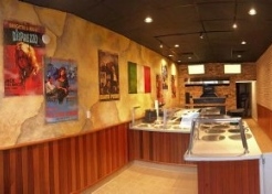 The interior of Dino's Pizza Express includes a mural of classic Italian movie posters. Trinity Artisans painted the mural and antiquated the posters to make it look rustic. "I wanted to do something since downtown is known for the arts," Buonsante said. Sennett Enterprise constructed the store and did a "tremendous job making it look and feel like an authentic New York City pizza shop," he said.