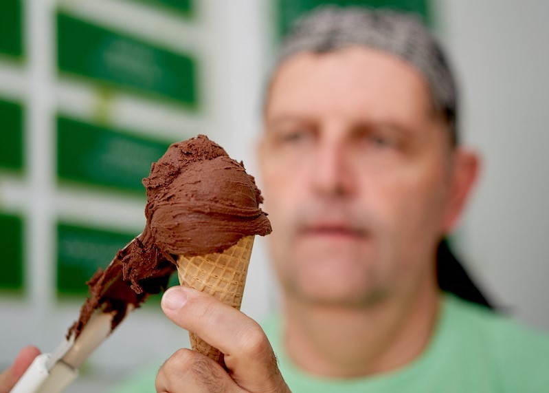 Chef D’Alessandro’s Dark Chocolate Surprise is a dairy-free sorbetto prepared with 80% South American dark chocolate and 20% water. According to the chef, dark chocolate sorbet is one of the most difficult gelatos to prepare because it requires a perfect balance of ingredients or runs the risk of being too bitter.
