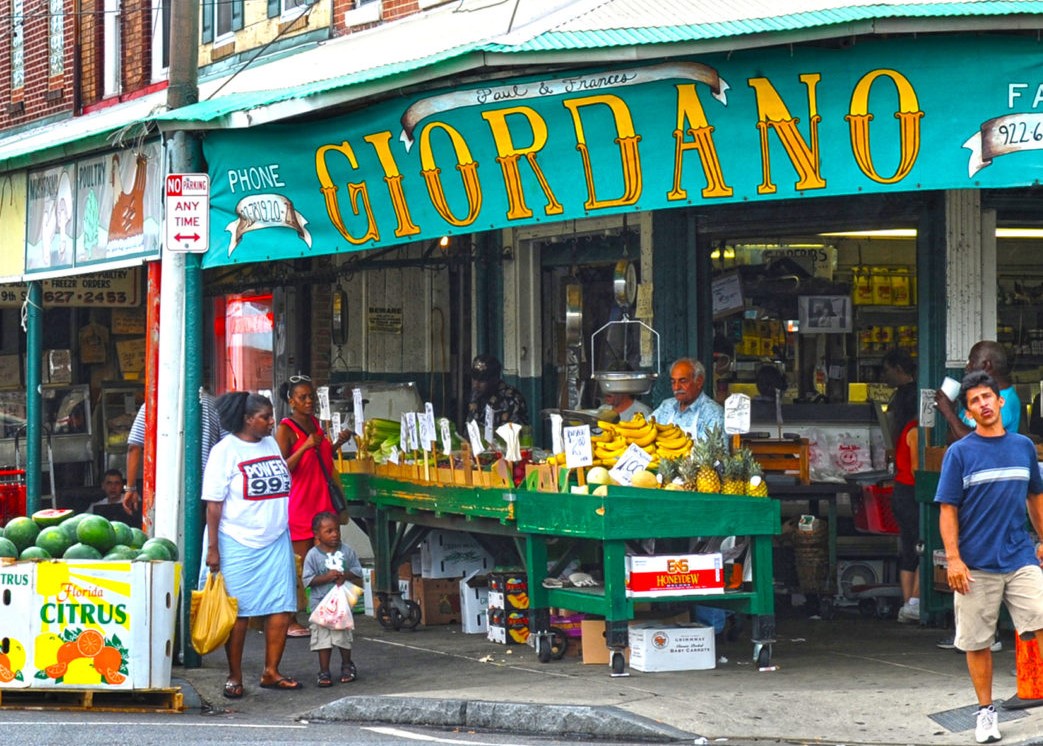 Philadelphia’s Italian Market, established in the early 20th century to counter the high prices and food shortages during WWI, spans ten city blocks of Ninth Street in South Philadelphia. Vendors line the street selling meat, fish, produce, and spices from their stalls. The local businesses include a variety of restaurants and specialty shops. Over time, this open air market has transformed from a local community market to a popular Philadelphian icon.