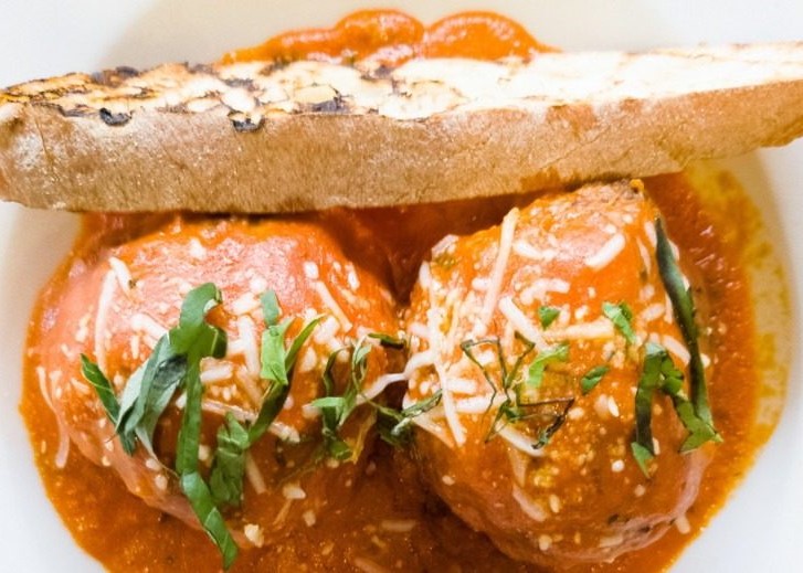 Everything about Lucco screams, “Big!” Its vaulted wooden ceiling rises high above the 130 seats. Emblazoned in large letters over the open kitchen is “Mangia, bevi, vivi.” (eat, drink, live). Perched atop a scaffold of spirits at the bar, a vintage red bicycle with Lucco-logoed delivery basket serves as a focal point.