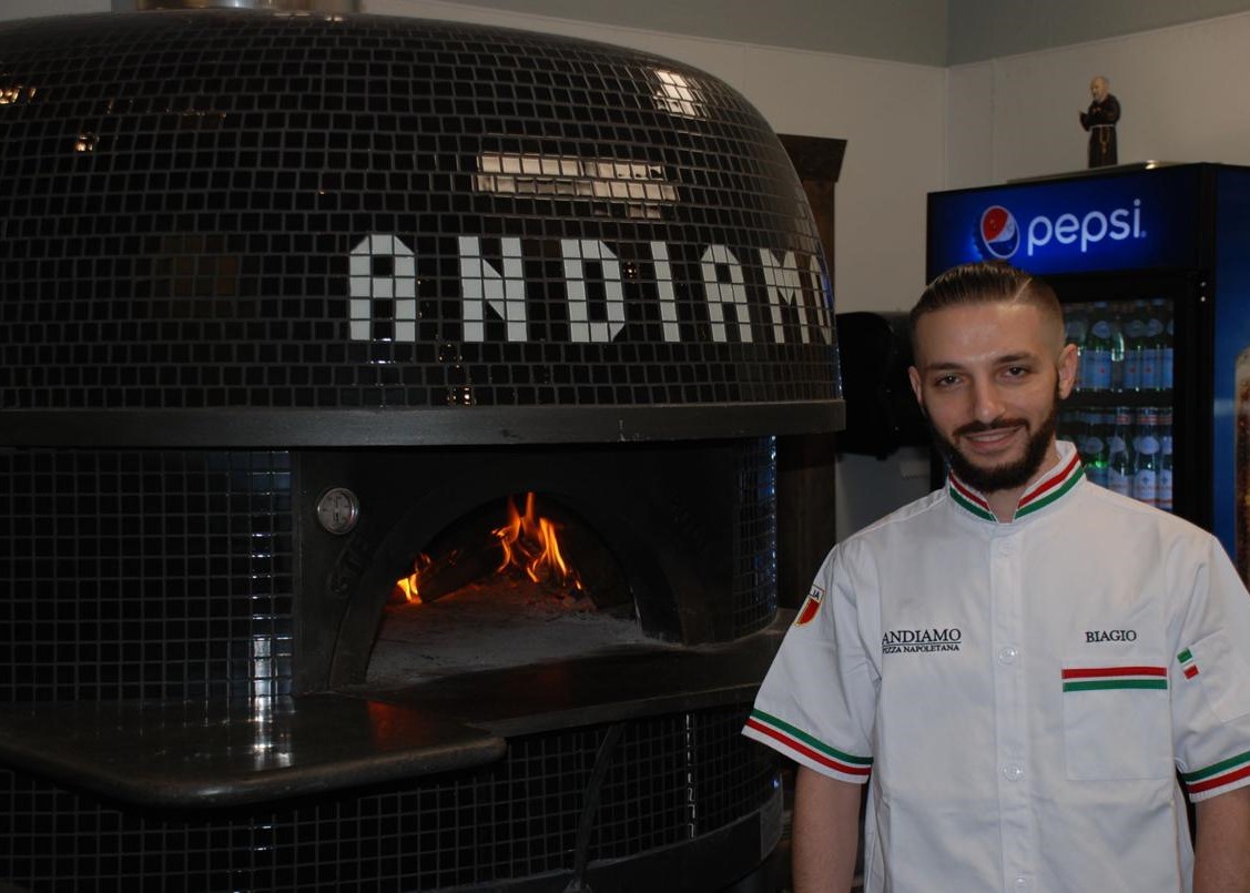 The pride and joy of Biagio Scire Jr.’s new restaurant is a 6,000-pound, tiled oven imported from Naples, Italy, bearing the name Andiamo. Meaning “let’s go” in Italian, Andiamo is the realization of a dream for the 29-year-old who opened the Neopolitan-style pizzeria in the Great Bridge Marketplace on South Battlefield Boulevard in mid-March.