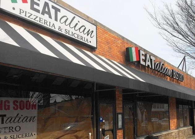 Signs at EATalian Bistro, which stretches for several storefronts, indicate that the new eatery will be a "pizzeria and sliceria."